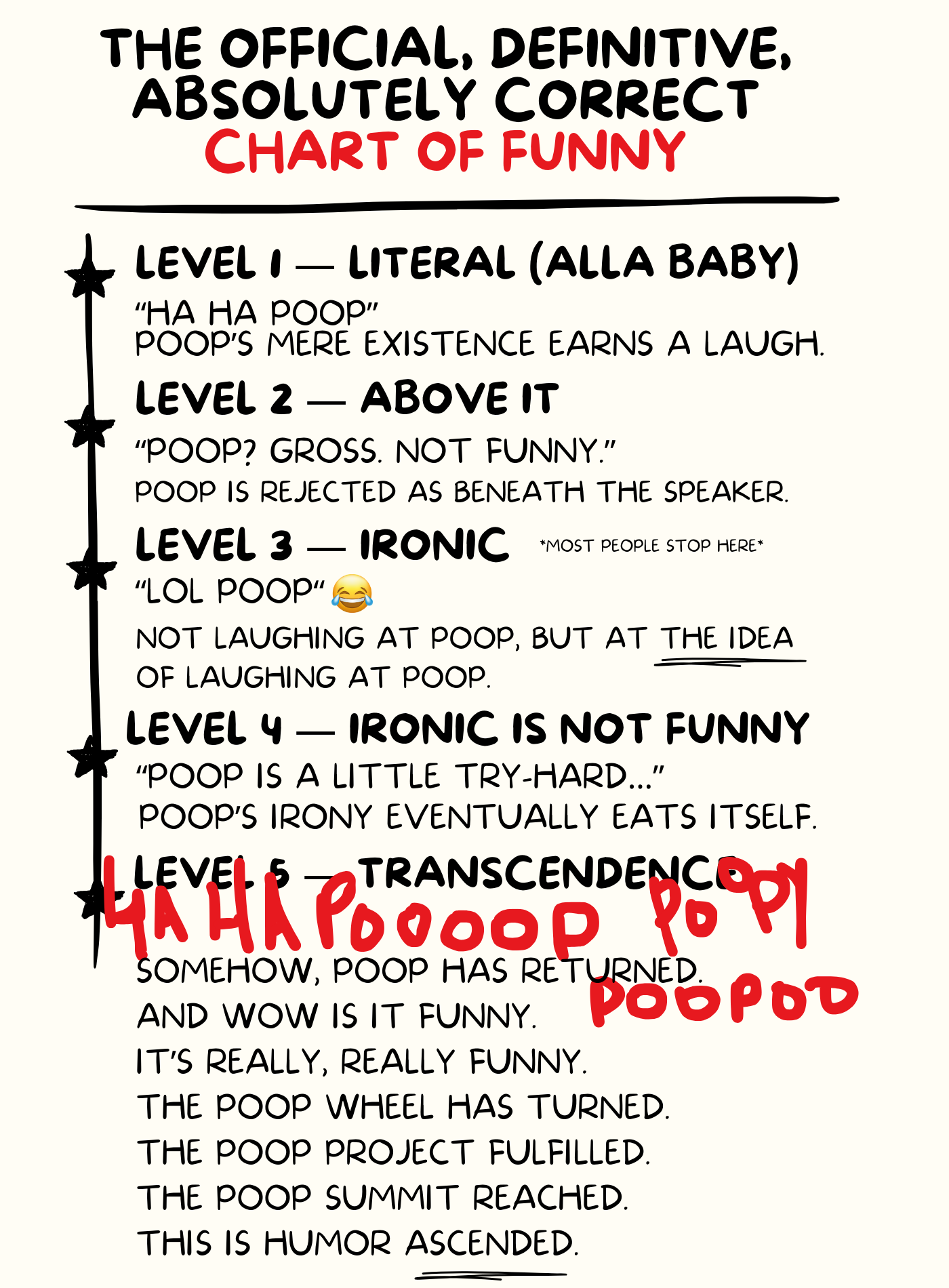 Half a decade ago, my roommate and I put together the absolute, ultimate, official, concrete, absolutely indisputable guide to how funny works.