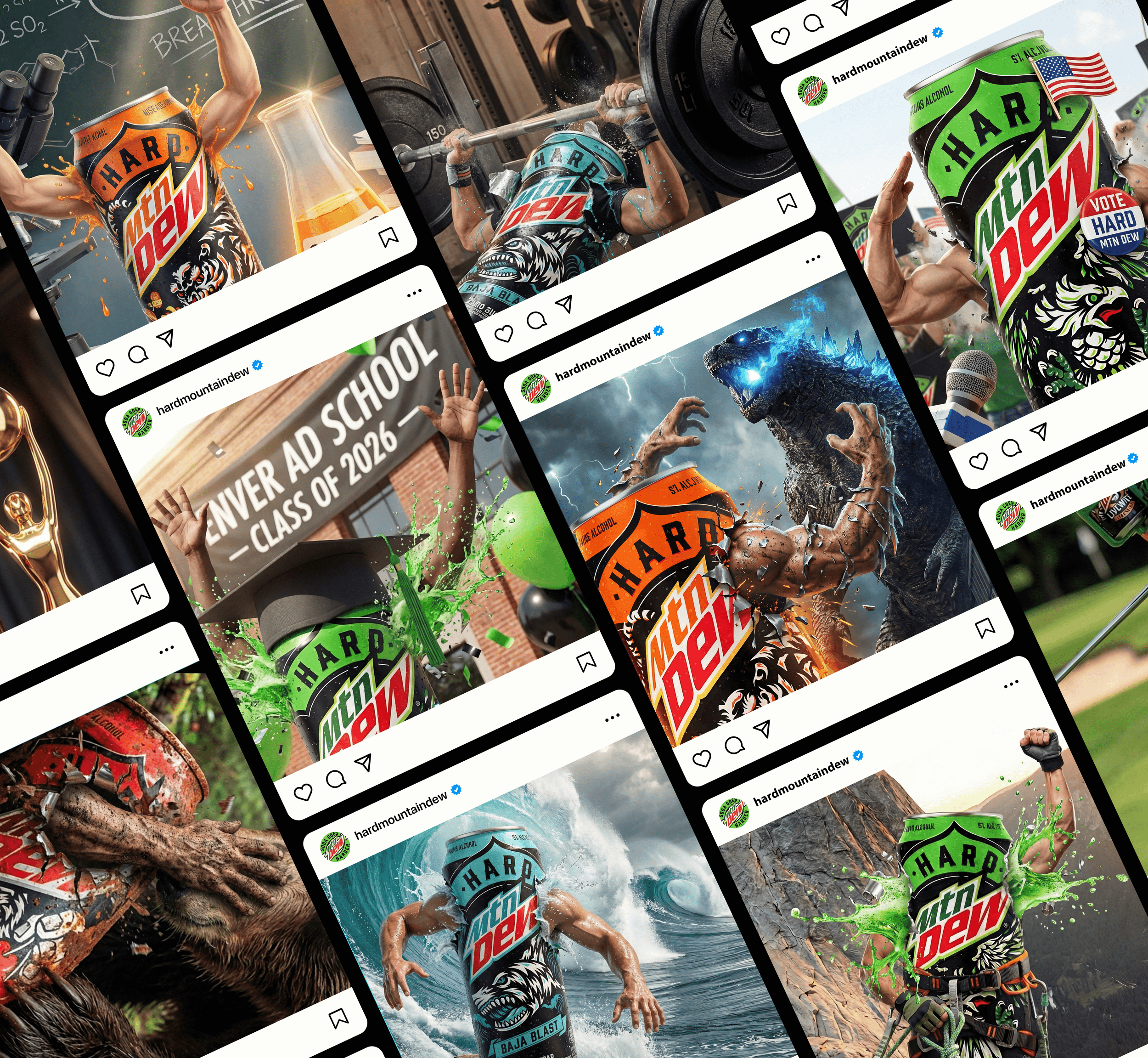 The hard seltzer market is weak. Played out. Basic. Boring. Conformist. Hard Mountain Dew wants to prove that hard SODA goes harder than seltzer every flippin’ time.
